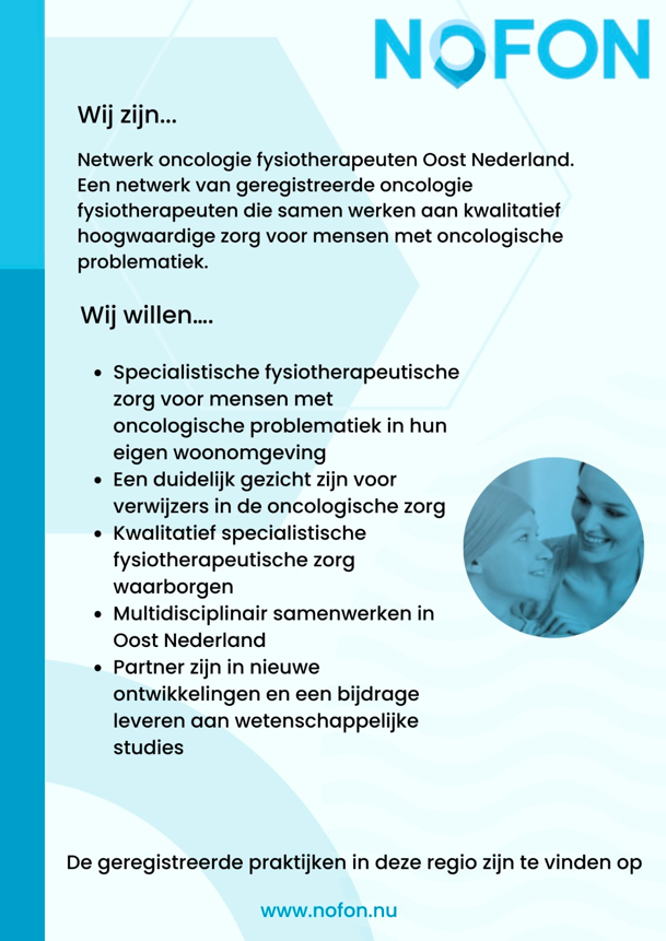 Folder voor verwijzers – met praktische informatie over het verwijstraject, specialisaties en de rol van oncologiefysiotherapie binnen de oncologische ketenzorg.